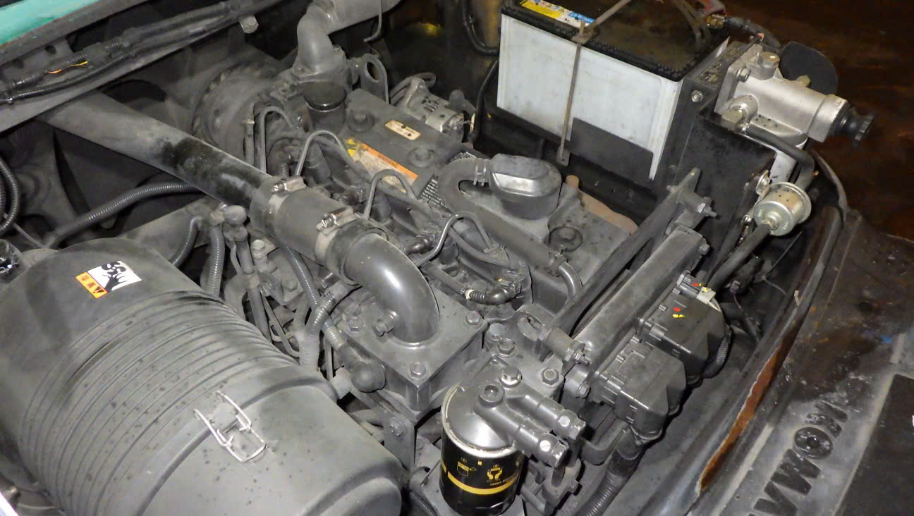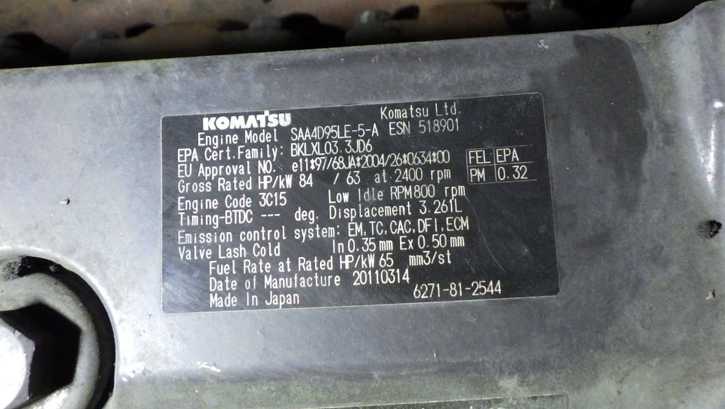 Nguồn sức mạnh cơ bắp của cỗ máy 4.5 tấn này đến từ khối động cơ KOMATSU SAA4D95LE. Đây là dòng động cơ công nghiệp chuyên trị tải nặng của Komatsu, nổi tiếng với khả năng sản sinh mô-men xoắn cực lớn ở vòng tua thấp, giúp xe có lực đẩy và sức rướn vượt trội. Quan sát thực tế khoang máy, có thể thấy tình trạng động cơ vẫn vô cùng liền lạc, khô ráo, khẳng định chất lượng tuyệt hảo của hàng nội địa Nhật.