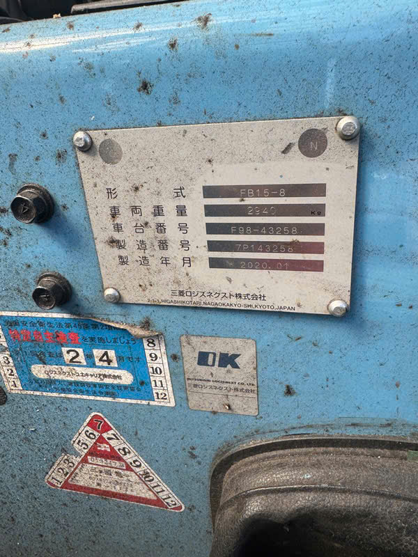 Tem thông số nguyên bản: Model FB15-8, Số khung F98-43258, Năm SX 2020