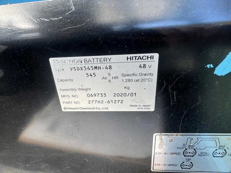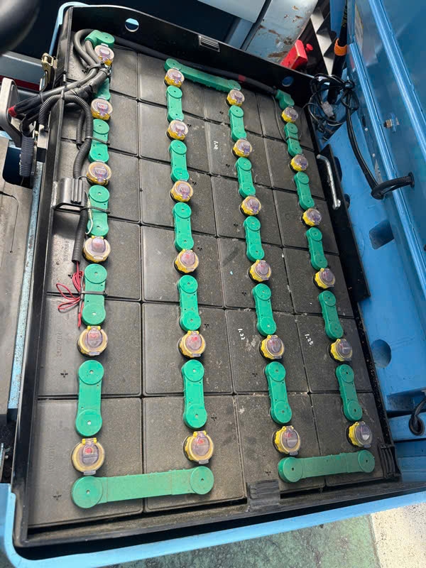 Đặc biệt, "trái tim" cung cấp sức mạnh cho xe là khối bình ắc quy cao cấp đến từ thương hiệu HITACHI (Nhật Bản) với mức dung lượng cực kỳ ấn tượng: 48V - 545Ah. Nhờ mức dung lượng lớn này, xe hoàn toàn có thể đáp ứng cường độ làm việc liên tục cả ngày dài mà doanh nghiệp không cần bận tâm về việc xe sẽ bị gián đoạn hay hụt hơi do hết pin.