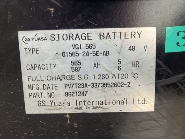 Nguồn năng lượng của xe đến từ khối bình ắc quy GS 48V với dung lượng 565Ah. GS Yuasa là thương hiệu ắc quy hàng đầu Nhật Bản, nổi tiếng với độ bền và khả năng tích điện ổn định. Với mức dung lượng lớn này, xe đảm bảo khả năng duy trì hoạt động bền bỉ trong suốt cả ngày dài mà không cần nạp điện giữa ca, giúp tối ưu hóa năng suất lao động cho doanh nghiệp.